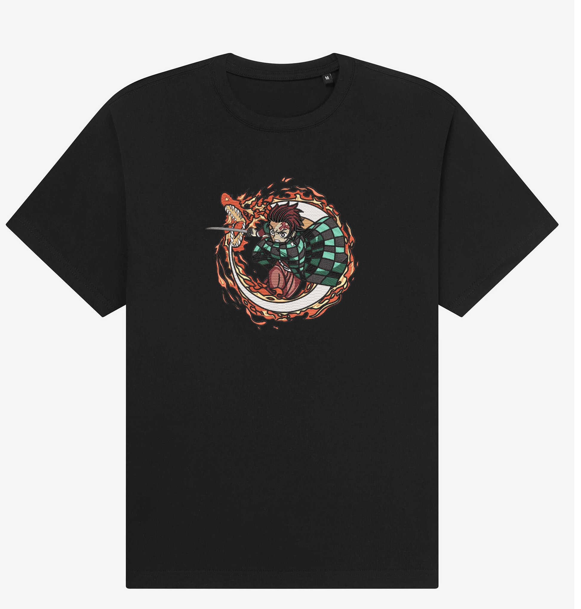 Anime-Inspired Design: Level up your streetwear with this Tanjiro Kamado Hinokami Kagura Sun Breathing Blade embroidered T-shirt, inspired by the hit anime Demon Slayer. This oversized tee captures the fiery elegance of Sun Breathing through detailed, high-quality embroidery — perfect for anime fans and collectors.