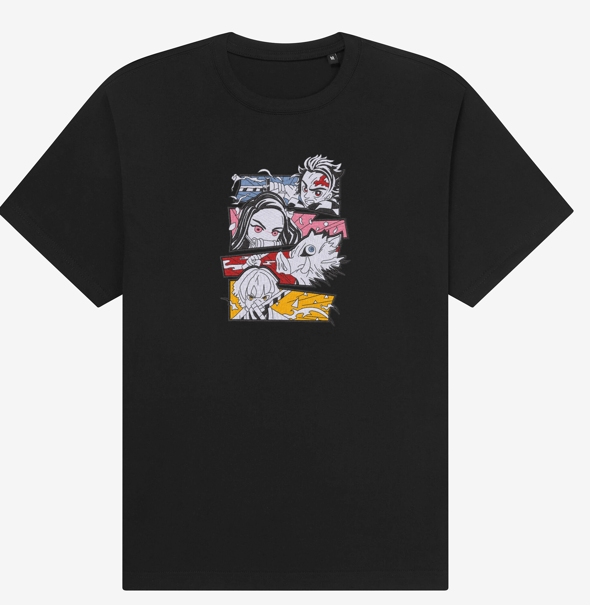 Anime-Inspired Design: Level up your streetwear with this Tanjiro Kamado Demon Slayer Gang embroidered T-shirt, inspired by the hit anime Demon Slayer. This oversized tee captures the fiery energy of the Demon Slayer trio through detailed, high-quality embroidery — perfect for anime fans and collectors.